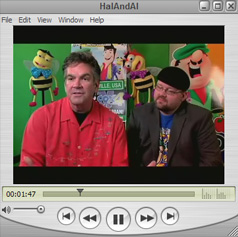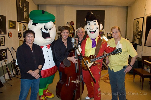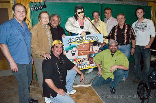 Hollywood Hal & Rhinestone Al in the studio With the world famous "Jordanaires" to add back ground & Harmony vocals to the new Hal & Al song titled "Sun Studios" all about teaching children the story of how Elvis became the KING of RocknRoll. The new CD is due out in July 2010. and a video real soon! John Conlee also added a few lines to the song! Also in the picture below is Country Music singer & The voice of Elvis in over 26 movies made on the KING "Ronnie Mcdowell" with Hal & Al at Sun Studio in Memphis, Tn. |